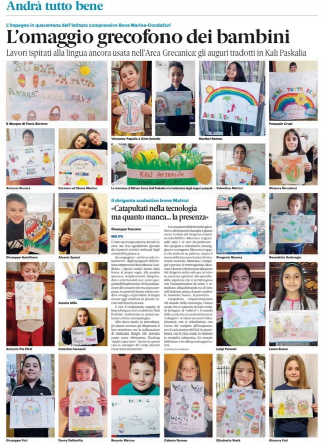 I nostri alunni, accompagnati anche se solo virtualmente dagli insegnanti dell’Istituto comprensivo di Bova Marina Condofuri diretto dalla Dirigente scolastica Irene Mafrici, hanno dato forma ai loro sogni e speranze… disegnandoli con i colori sgargianti della primavera.